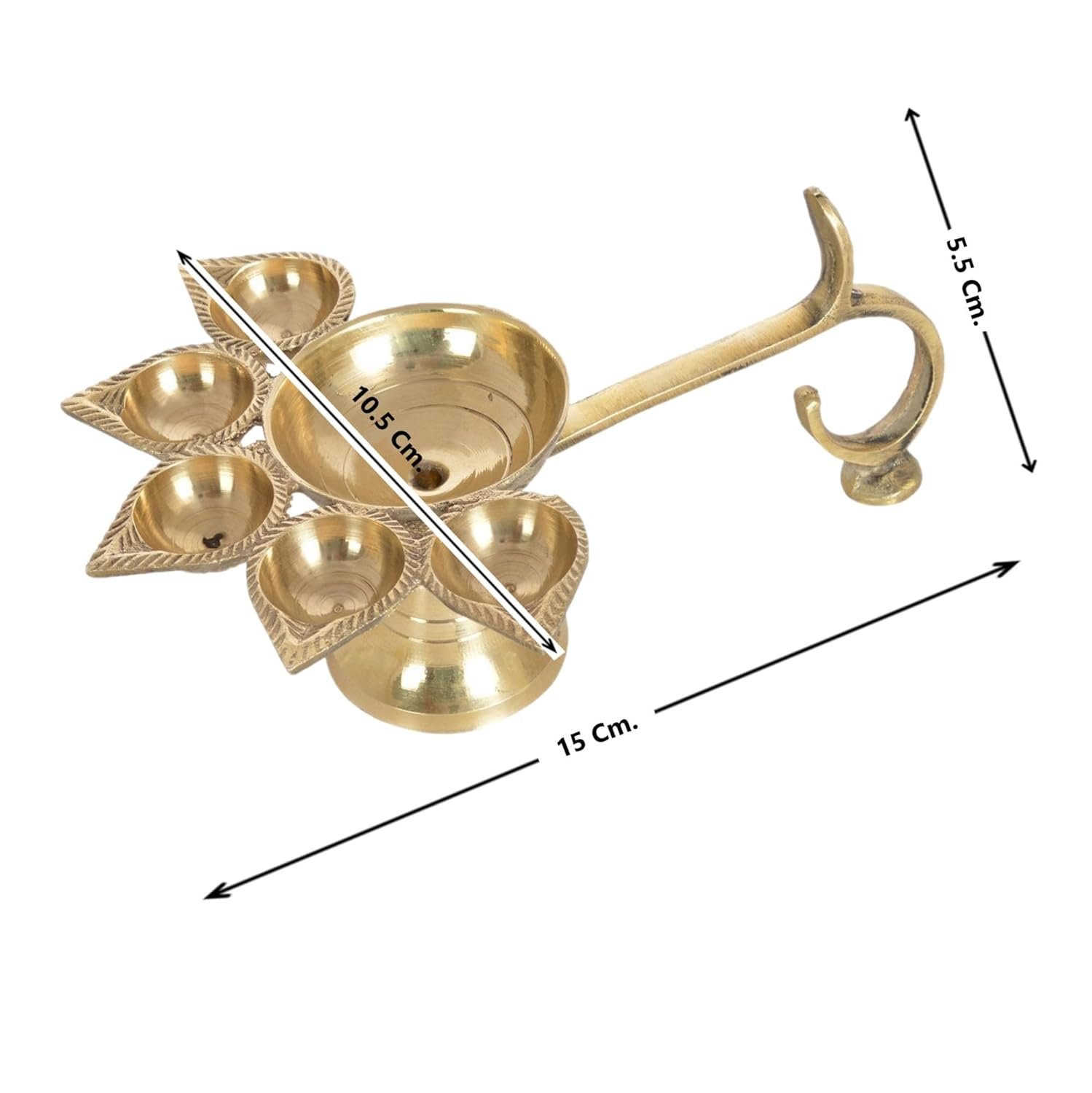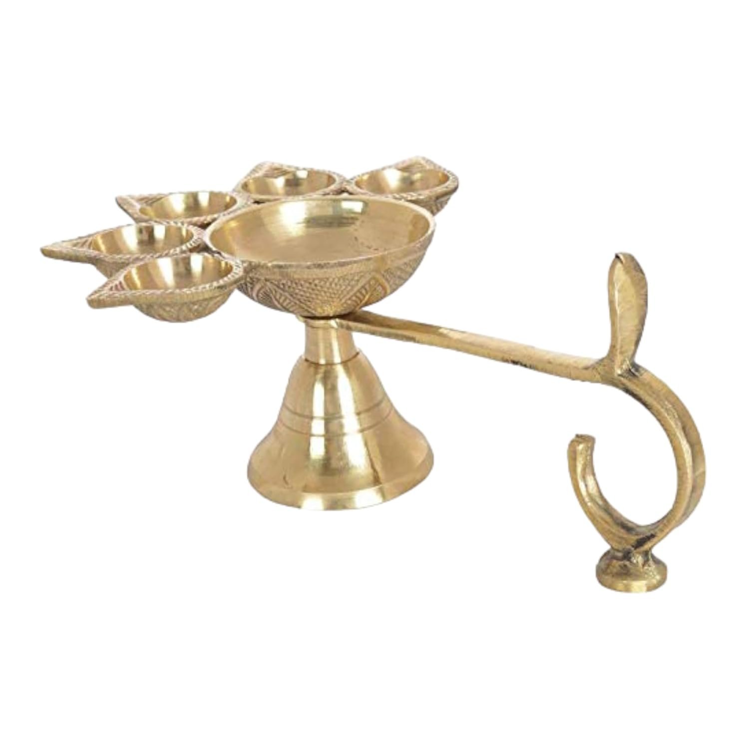Brass Deepak | Panch Mukhi Puja Diya Lamp, Aarti | 5 Faces Deep Decorative Accessory (10.5 cm, 1)