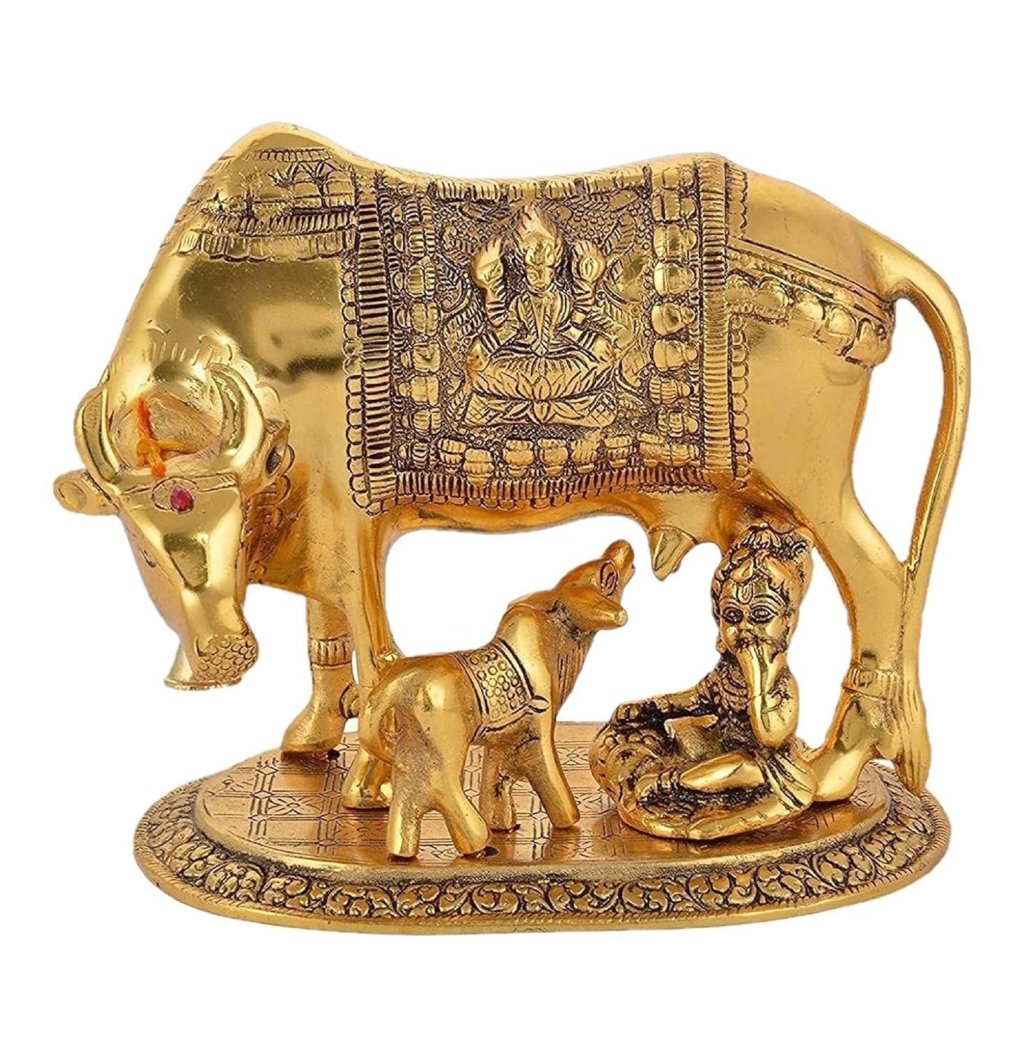 - DIVINE DESIGN: Features intricately detailed Kamdhenu Cow with Calf and Krishna idol, perfect for religious and decorative purposes