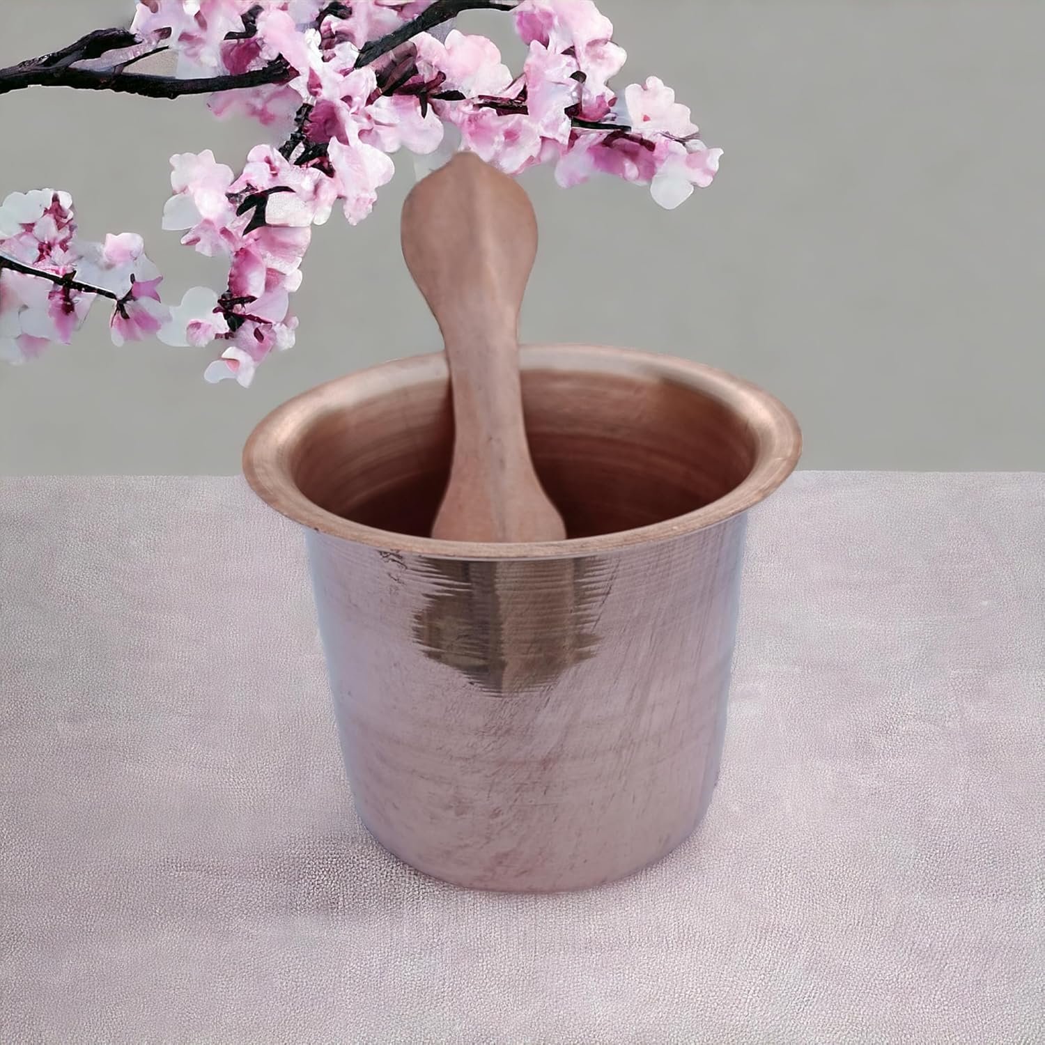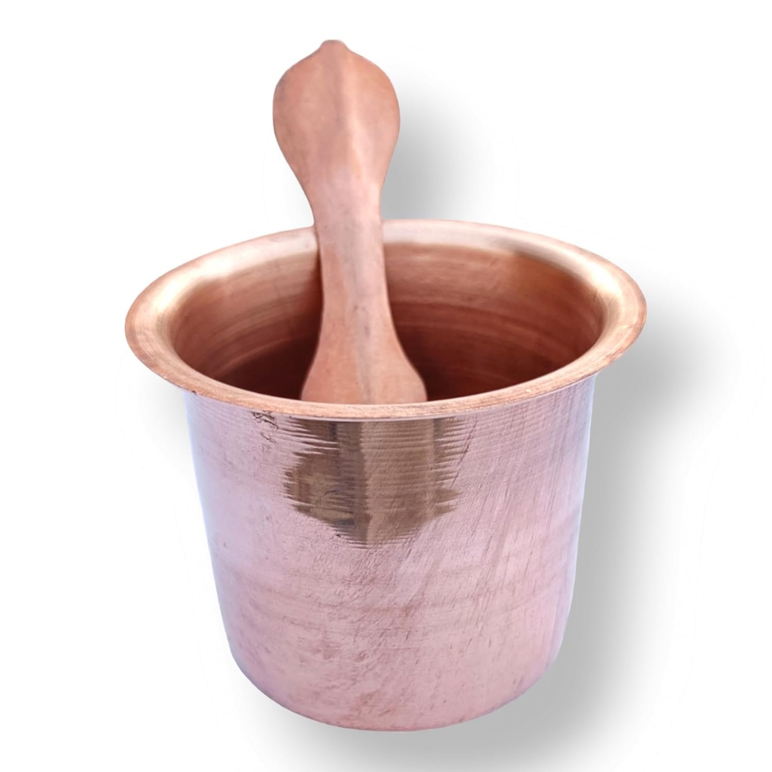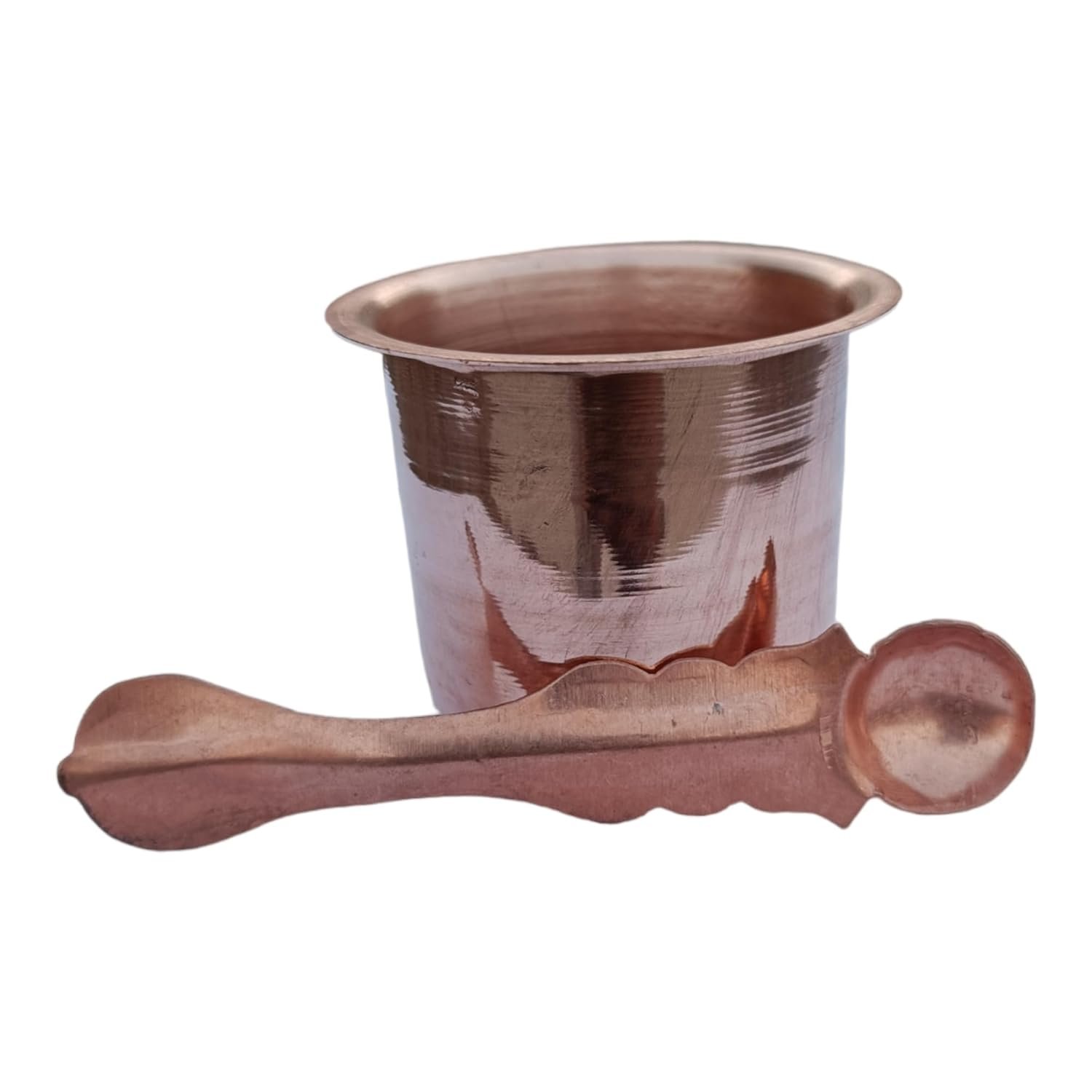 Copper Panchpatra Set with Achamani | Indian Traditional Handcraft Panchpatra with Spoon for Pooja, Temple, Diwali (4cm)